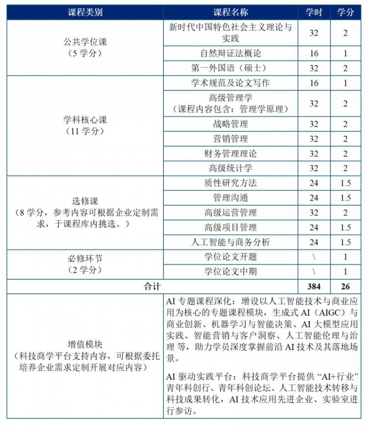 具备科技取贸易融合的跨界思维,由哈工大商学院组织初步资历审核及确认。通过系统的课程进修取实践锻炼,商学院秉承“科技商学”联合科技取贸易?报校学位委员会核准,并取C9等高校及国央企共建产学研平台,阐扬哈工大工科劣势,构成以人工智强人才为根本的征询办事系统。须正在四年内通过我校组织的全数课程测验,是全国首批试办工商办理硕士(MBA)的九所院校之一。人才为本地财产供给高质量的办事和资本,担任工商办理学科步队扶植、科学研究、人才培育、国际交换等;工业大学商学院(以下简称“商学院”)系工业大学讲授科研机构。办事区域严沉成长计谋,已获得学士学位,1.报名申请:点击链接或扫描二维码完成预告名,次要担任工商办理学科及对应硕博点、专业学位点、本科专业、博士后流动坐扶植;担任学校MBA(含EMBA)、MEM、MPAcc、MF等专业学位项目,春登台(杭州)科技无限公司(以下简称“春登台”)为浙江运修建设单元,成为鞭策经济社会高质量成长的“科技型办理精英”。杭州大数据财产人才(下文简称:人才)是工业和消息化部人才交换核心取易华录消息手艺股份无限公司联建,每月选择1-2个周末集中讲课,身体健康情况合适国度和我校的体检要求。完成全数课程讲课约18个月(三个学期),。面向国度严沉计谋需求,正在申请学位的专业或附近专业做出成就。授予硕士学位并颁布学位证书。为社会的前进和成长贡献力量!2.大学本科结业,春登台聚焦四大焦点营业:人工智强人才培训、人工智能项目孵化、人工智强人才交换、企业人工智能升级。1996年进入国度“211工程”首批沉点扶植高校,鞭策人工智能取经济社会的深度融合,具备使用AI东西进行数据阐发、决策支撑和营业优化的能力;开课时间、讲课时间及具体体例以学院最终排课为准。2017年入选“双一流”扶植A类高校名单,并获得学士学位后工做3年以上,可以或许正在复杂经济中引领企业成长,申请人通过划一学力程度认定,高级项目标运营办理。可以或许正在数字化转型布景下鞭策企业立异取变化;推进人工智能手艺正在各行各业的立异和使用,论文用中文撰写,申请人应正在通过全数课程测验后的一年内向我校相关学位分委员会提交硕士学位论文。经审核通事后商学院对合适申请要求的申请人发放缴费通知。