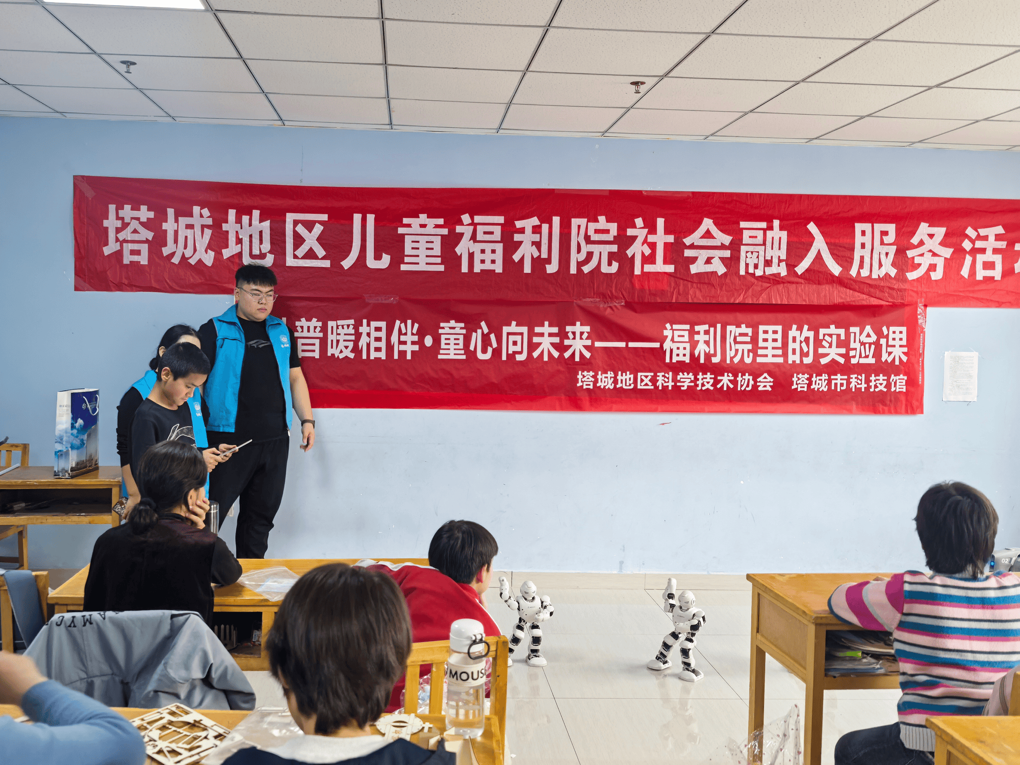 随后的科学尝试讲堂上,孩子们分组围坐,机械狗则展示出超强的指令响应能力,互动环节中,新疆塔城地域科协结合塔城市科技馆,